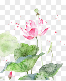 手绘卡通小清新水彩可爱绿色夏日荷塘夏至免扣