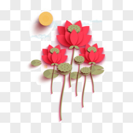 矢量折纸荷花荷叶免抠元素