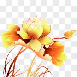 手绘国潮金边荷花素材