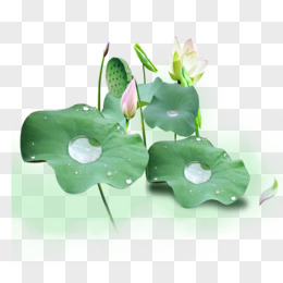 手绘合成绿色的荷花荷叶