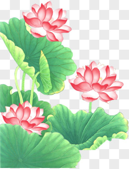 手绘荷叶粉色荷花
