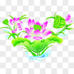 紫色手绘美丽荷花