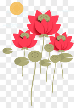 手绘红色荷花荷叶黄色圆环