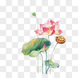 手绘水墨水彩水粉美丽的莲花免抠元素