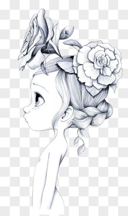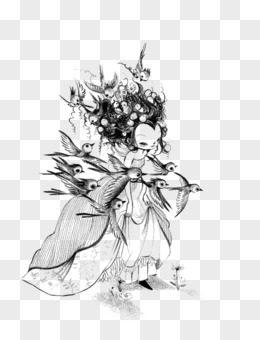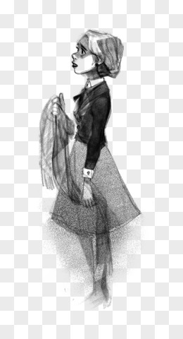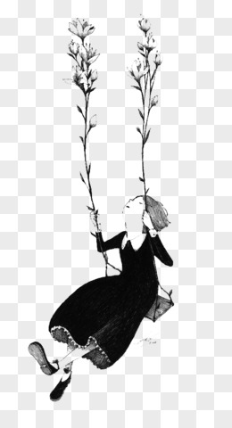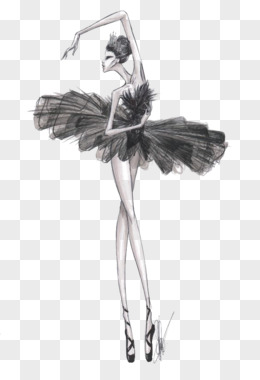 卡通手绘单色黑白女孩跳芭蕾舞免抠元素