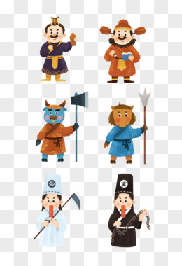 一组手绘插画风阴曹地府鬼怪插画套图之黑白无常元素