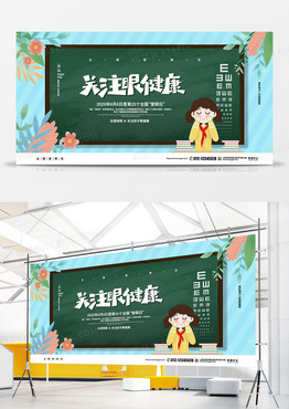 手绘卡通简约黑板关注眼健康全国爱眼日宣传展板设计