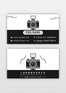 黑灰相机时尚卡通影楼摄影数码相机摄影工作室名片