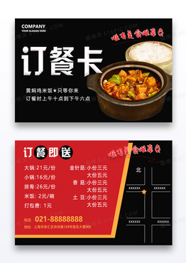红黑炫彩精致黄焖鸡米饭订餐卡设计