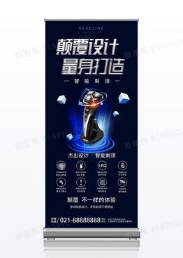蓝色炫酷剃须刀创意宣传产品促销展架易拉宝