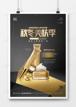 酷炫黑金秋冬美肤季美装宣传海报模板设计