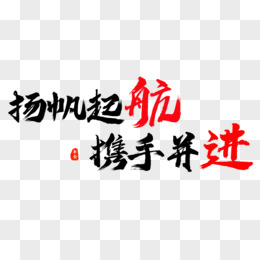扬帆起航携手并进黑色毛笔艺术字