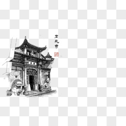 手绘黑色北京地标线描建筑素材
