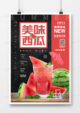 美味西瓜鲜榨西瓜汁黑色简约海报