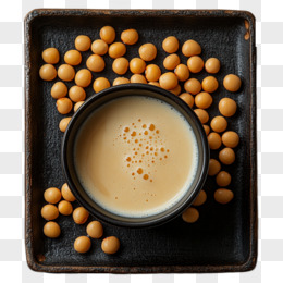 产品实拍豆类食材黑色方盘中的豆浆和黄豆免抠元素