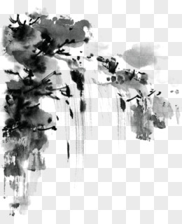 古典黑色水墨场景树木建筑