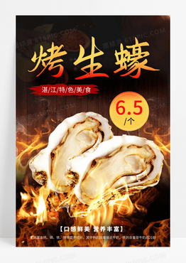 黑色美食简约复古梅花生蚝烤生蚝海报