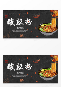 黑色简约背景简洁中国风酸辣粉宣传展板设计