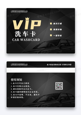 黑色线条简约VIP洗车卡洗车会员卡