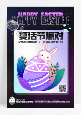 酸性黑色紫色绚丽复活节活泼可爱节日海报设计