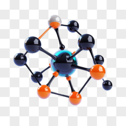 3D插画黑色橙色粒子组成的分子式免抠元素