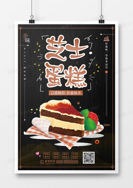 简约黑色芝士甜品蛋糕海报
