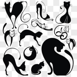 手绘简约黑色猫咪边框装饰可爱读书卡png线条