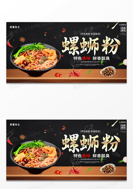 大气黑色美食螺蛳粉展板设计螺蛳粉海报
