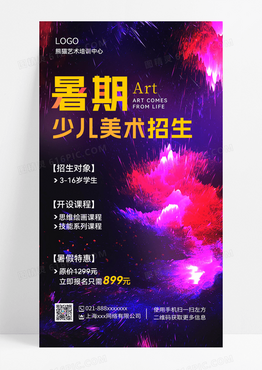 黑色彩色喷墨暑期美术招生暑假美术招生海报美术暑假班暑期班培训班招生ui手机海报