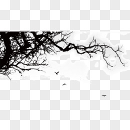 手绘黑色剪影枯树枝装饰元素