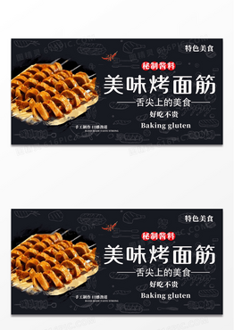 黑色水墨中国风烤面筋餐饮美食烤面筋展板设计