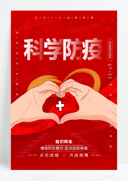 粉红色的爱心天使之手简约抗击疫情防疫海报