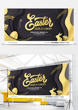 黑色剪纸简约4月12日复活节促销宣传展板设计