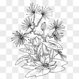 手绘黑色线条漫画花朵装饰