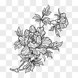 一组黑色牡丹花线稿套图系列一免抠元素
