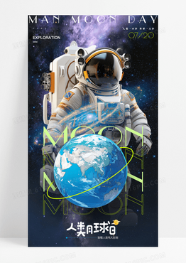 黑色星球人类月球日手机宣传海报