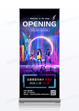 黑紫炫酷音乐店铺开业宣传展架易拉宝