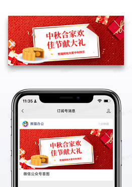 红色中秋合家欢佳节献大礼微信公众封面图片