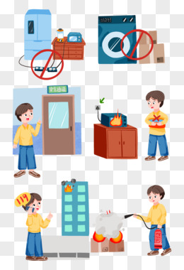 一组手绘消防安全套图元素
