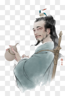中国风古风手绘水墨古人诗人喝酒赏月素材