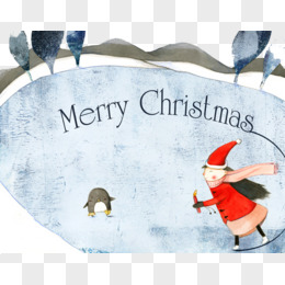 手绘女孩企鹅贺卡