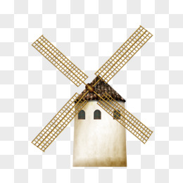 手绘荷兰大型风车免抠元素