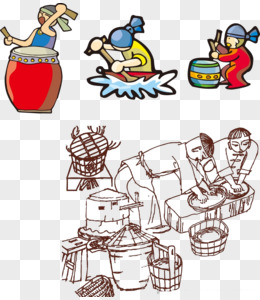 一组手绘插画学生形象上劳动课的各种劳动项目套图合集元素三