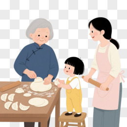 一组手绘水彩风女孩制作月饼过程图之和面素材