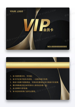 黑金商务名片高档简洁大气横板VIP会员卡