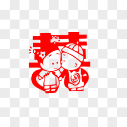 矢量结婚囍字新人娃娃剪纸免抠元素