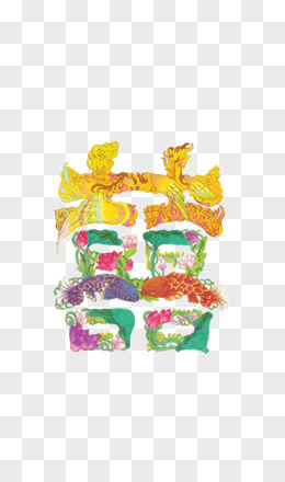 金色结婚双喜临门锦鲤浮雕装饰元素