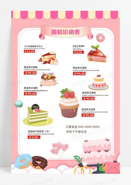 粉色西式简约温馨蛋糕价格表蛋糕价目表