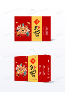 简洁红色卡通家的味道贺年装礼盒手提盒设计新年礼盒