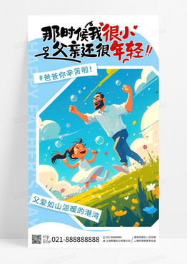 简约插画那时候我很小父亲还很年轻父亲节手机宣传海报